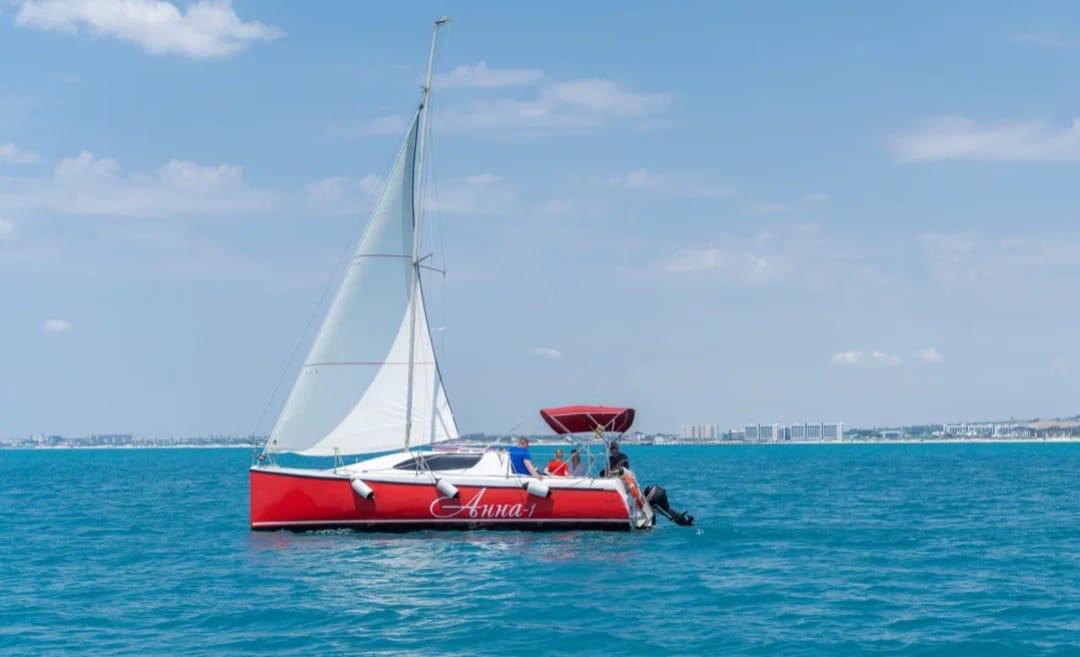 Аренда парусной яхты Анна для своей компании. Только Ваша компания и море, без ограничений по времени. В открытом море есть очень высокий шанс встретить дельфинов в естественной среде обитания. Во время аренды вы можете ходить в любое место в море на удаление не более 1 км от берега. Отличный выбор для частных прогулок с комфортом. Модель: "Alexstar 25" Страна производитель: Россия Длина: 8 м Ширина: 2,4 м Площадь парусов: 30,2 кв м Двигатель: 10 л.с "Merkuri" Комфортное размещение: 8 чел. (макс. 11 чел.) Каюта с санузлом. Наличие аудио системы.